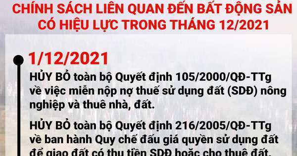 Theo Quyết định 35/2021/QĐ -TTg từ ngày 1/12 chính thức bãi bỏ một số văn bản quy phạm pháp luật liên quan đến nhà đất. Cũng trong tháng 12, nhiều chính sách tác động mạnh mẽ đến thị trường bất động sản sẽ bắt đầu có hiệu lực.