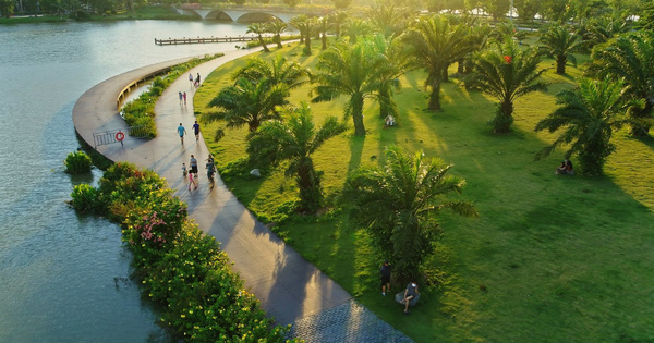 Những cung đường và vỉa hè tại Ecopark được lát bằng đá núi, gạch không nung và gỗ thân thiện với tự nhiên; Các vật liệu hài hoà xen lẫn với những khe hở để nước mưa thấm xuống, cỏ mọc được lên, côn trùng vẫn sinh thưởng thuận lợi dưới đất.