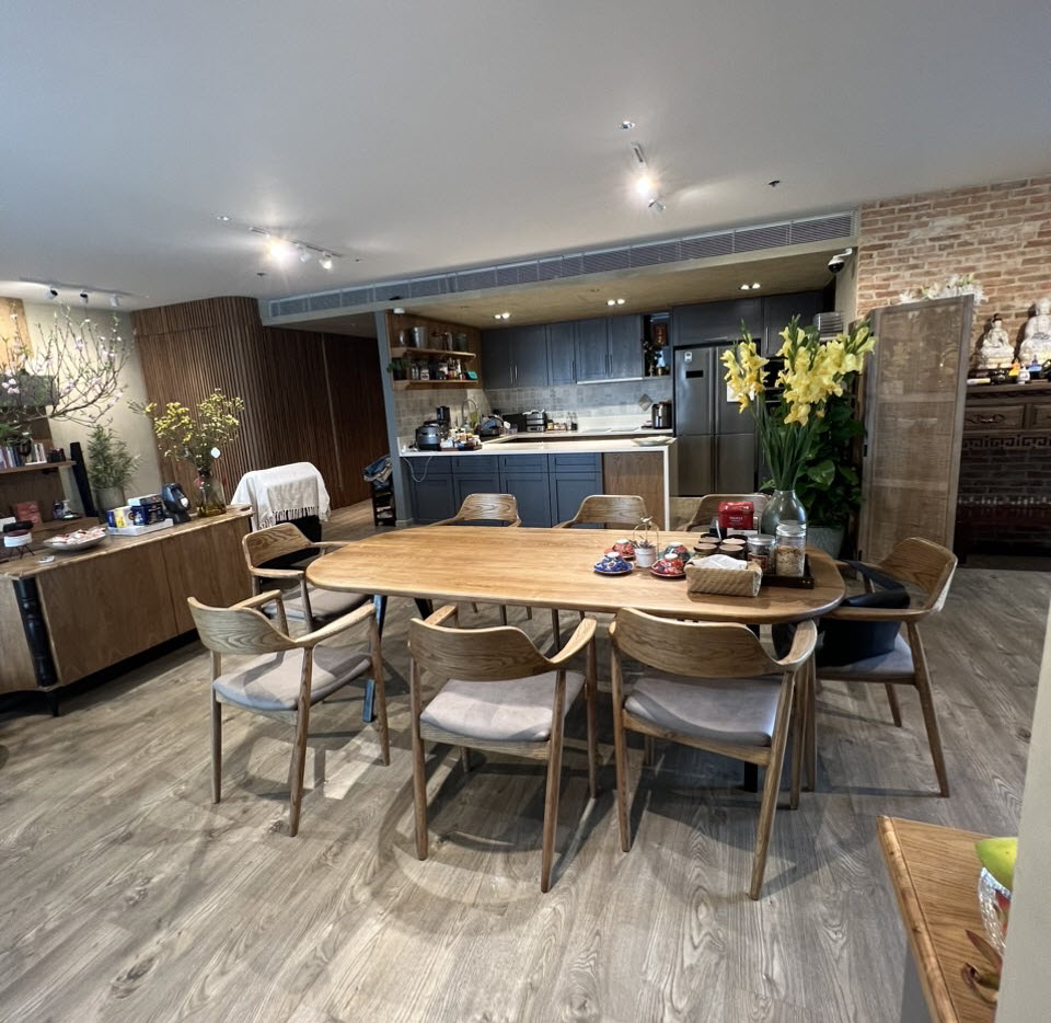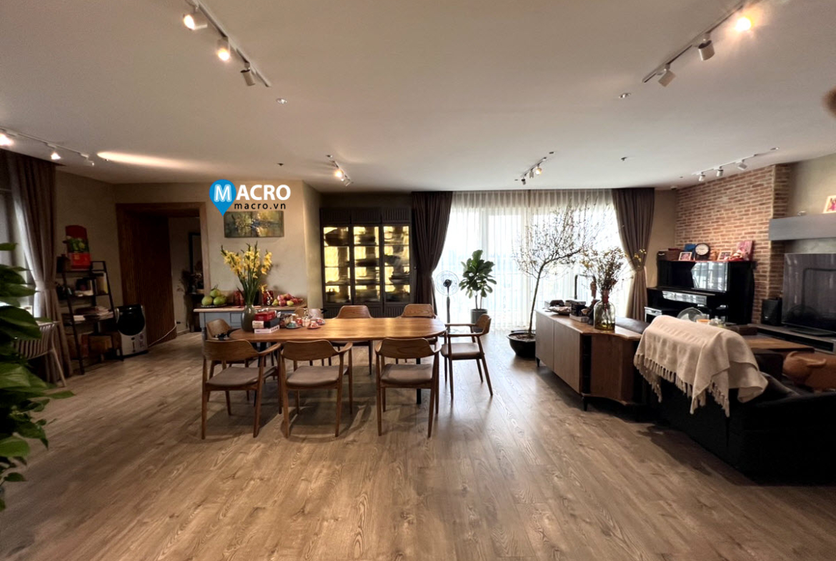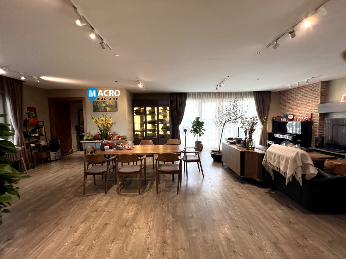 Diện tích: 220 m2, gồm phòng khách + ban công rộng, phòng ăn, không gian bếp mở, 3PN, 3WC