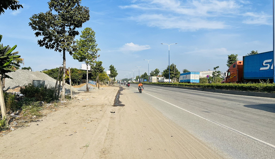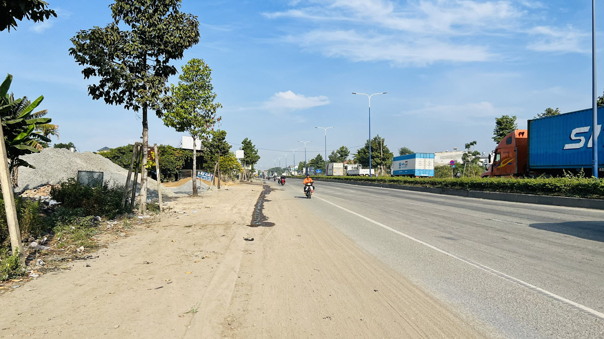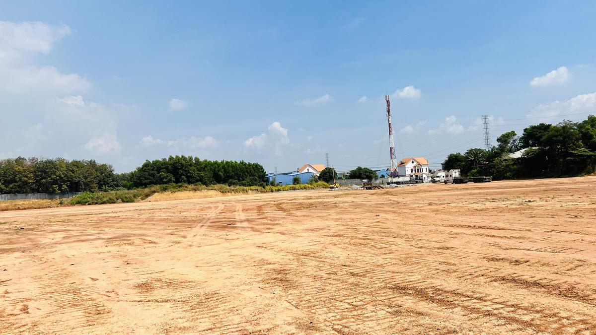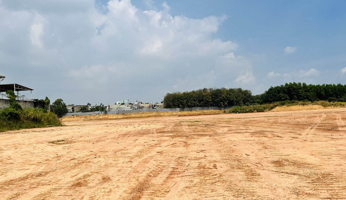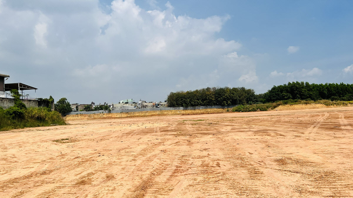 Cho thuê 62000 m2 (6,2 ha, có thể cho thuê từng phần từ 3000 m2) đất kho bãi tại mặt tiền đường DT73, An Phú, Thuận An, Bình Dương (liền kề ngã 6 An Phú). Lô đất đã có tường rao bao quanh, nền đất được san lấp chắc chắn tiện làm bãi đậu xe container, trạm depot trung chuyển hàng hóa