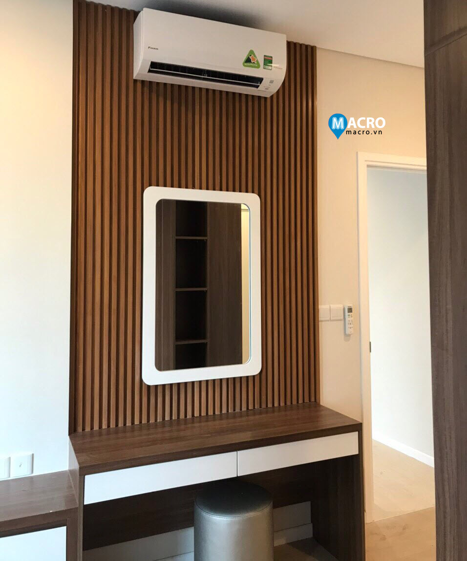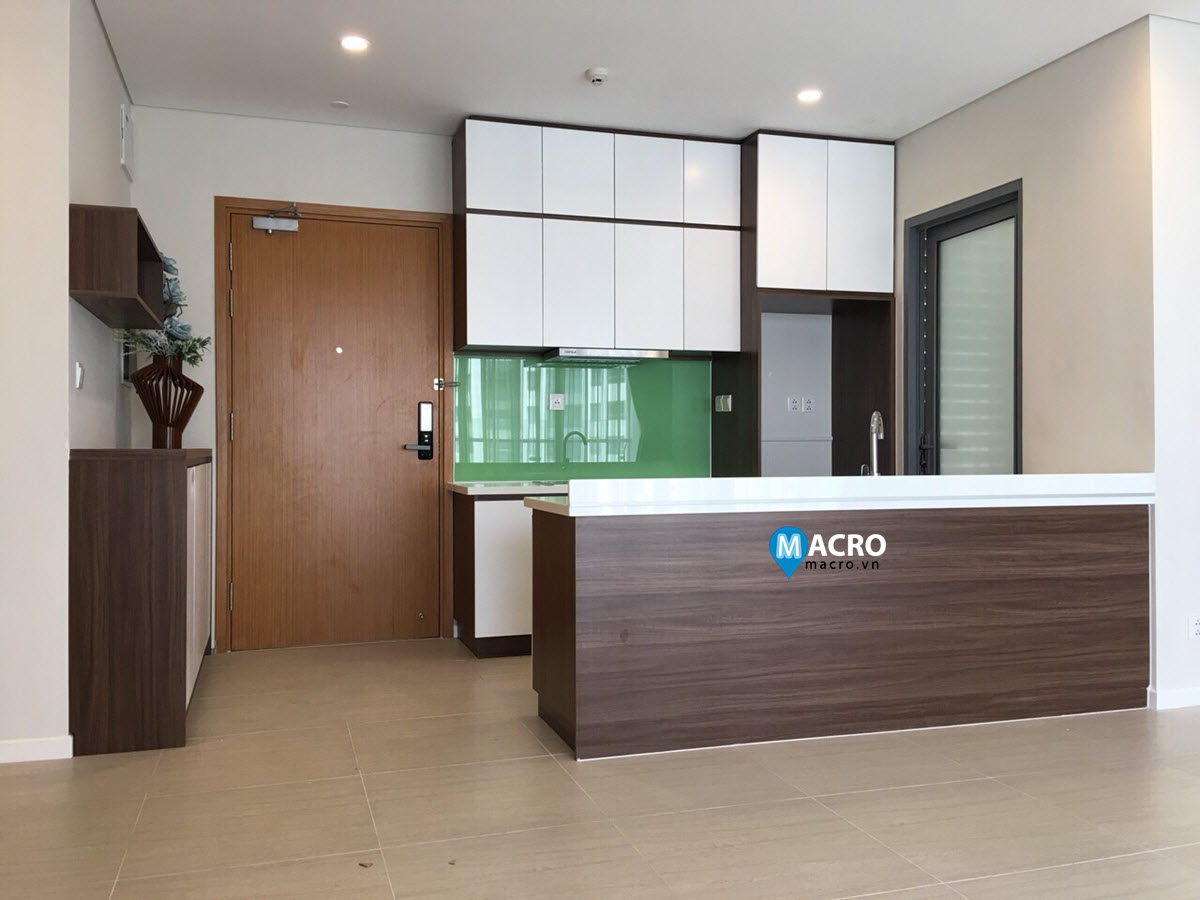 Căn hộ 90 m2 với thiết kế phòng khách + balcony, khu vực bếp, giặt phơi, 2PN, 2WC. Căn hộ trống (nội thất cơ bản) bao gồm: máy lạnh, rèm cửa tại các phòng, tủ tivi, bếp nấu, tủ bấp trên dưới, tủ quần áo tại phòng ngủ, bàn trang điểm. Căn hộ phù hợp cho quý khách đã có nội thất riêng.