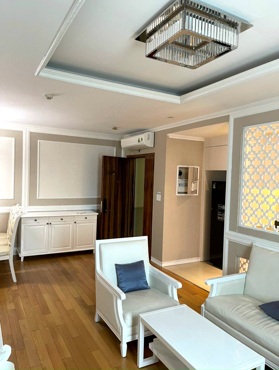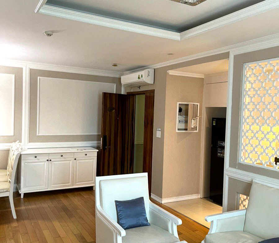 Cho thuê căn hộ Leman Luxury Quận 3, tầng cao view nhìn khu biệt thự cổ Quận 3, chùa Vĩnh Nghiêm, nhà thờ Tân Định… Với diện tích 75 m2 được thiết kế gồm phòng khách, phòng ăn, bếp, khu lobby để tủ giày, 2 phòng ngủ, 2 nhà vệ sinh. Căn hộ được trang bị đầy đủ nội thất cao cấp, sàn nhà gồm cả phòng khách được lát gỗ giúp căn nhà luôn ấm cúng, sang trọng, tường được dán giấy và trang trí hoa văn theo phong cách Tân Cổ Điển, phòng khách đã có sofa, tivi, đèn trang trí, đèn chiếu sáng, bếp với tủ bếp, bếp nấu, máy hút mùi, phòng ngủ đã có giường nệm, tủ quần áo, bàn trang điểm…. Quý khách chỉ xách vali vào ở ngay