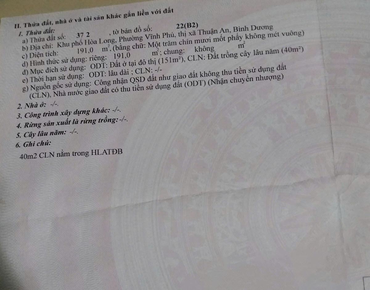 Chi tiết đất biệt thự Vĩnh Phú Thuận An cần bán