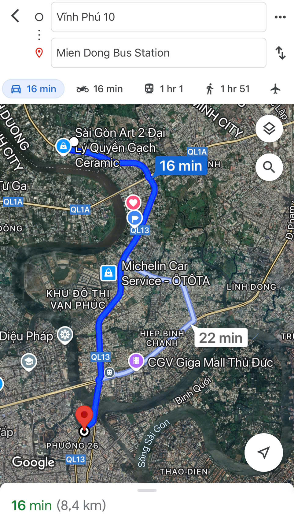Khoảng cách từ xe buýt Sài Gòn Đến Vĩnh Phú