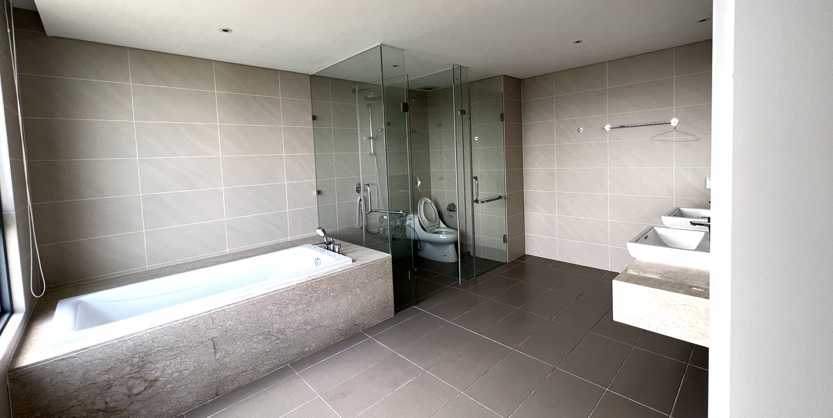 Duplex 2 tầng với 4PN, 5wc, tất cả các phòng đều nhìn sông, đặc biệt mỗi tầng có ban công riêng.